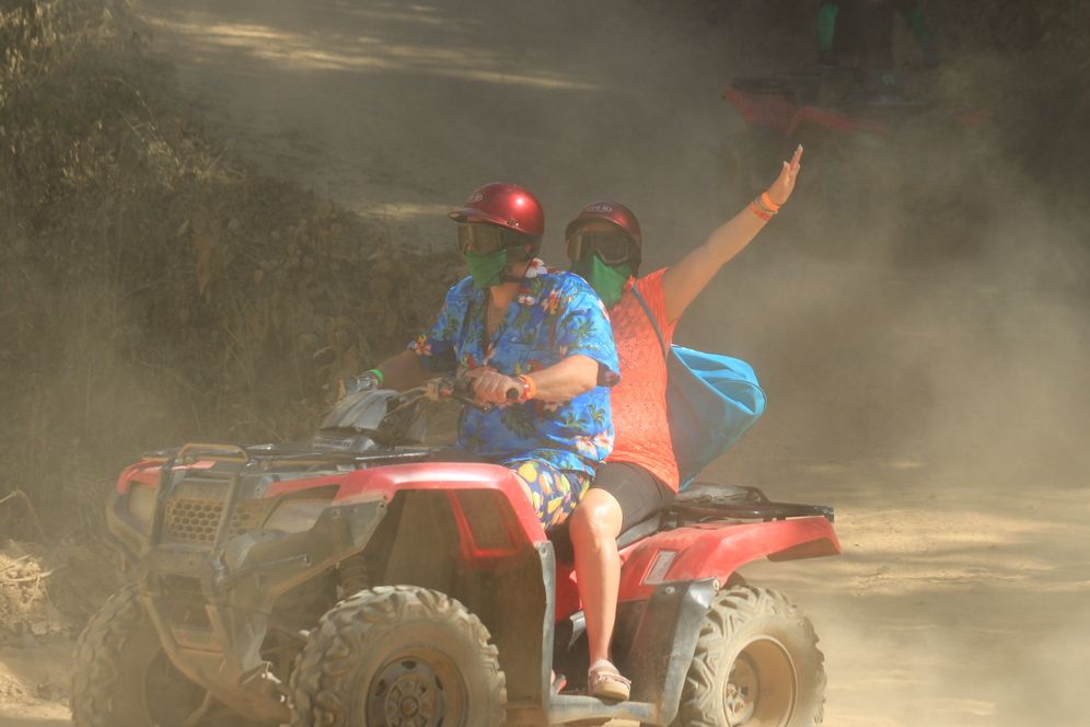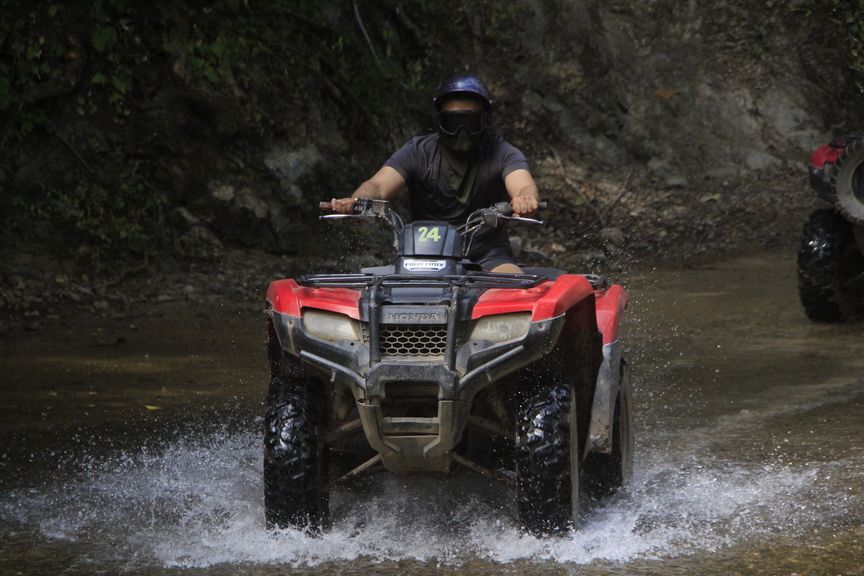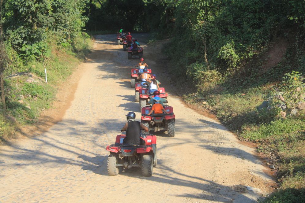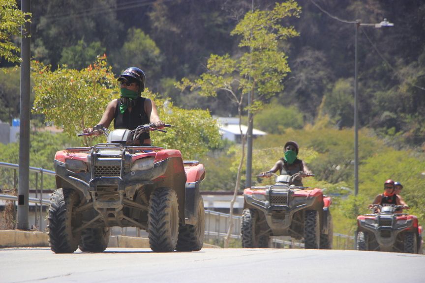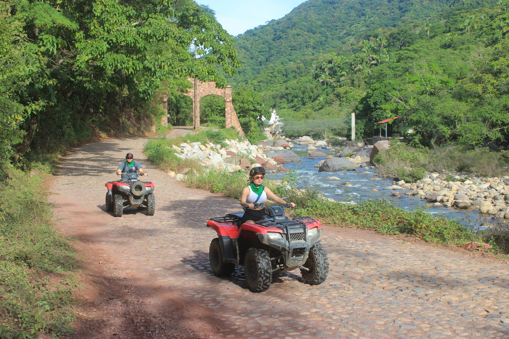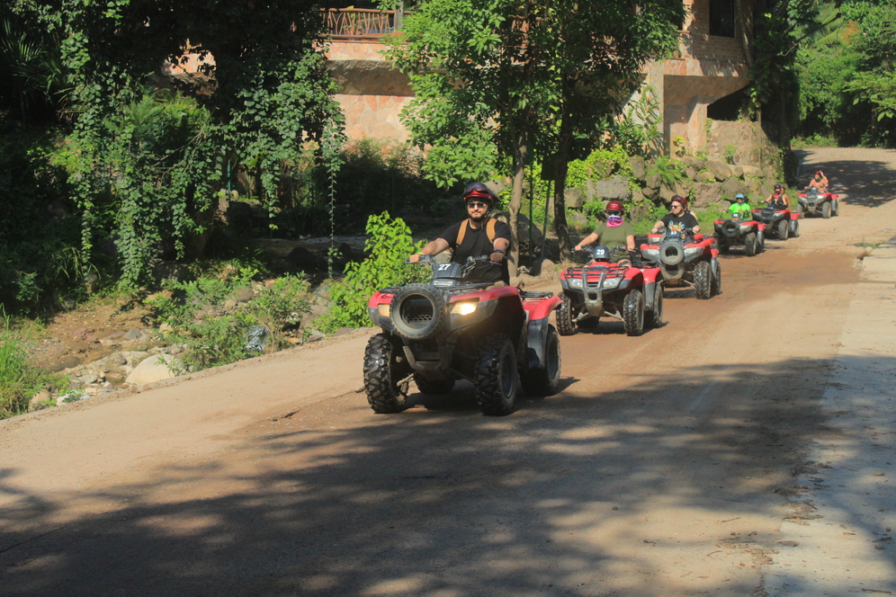 Para quienes buscan mayor adrenalina, la ruta de aventura ofrece tramos más dinámicos, caminos de tierra y senderos naturales que permiten sentir la potencia de la cuatrimoto mientras avanzas por la selva y las zonas montañosas del Río Cuale, siempre en un entorno controlado y guiado.